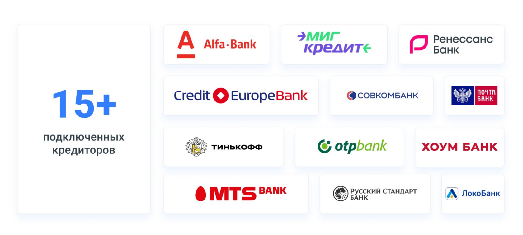 С нашей помощью кредитовать ваших покупателей будут десятки кредиторов. Они соревнуются между собой за ваших клиентов, а вы получаете одобрение более 50%.
